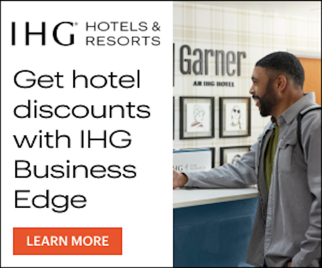 | | Sponsored | | IHG Business Edge is a free, global travel program built for small and midsize enterprises. Access guaranteed discounts—at thousands of participating IHG Hotels & Resorts worldwide. Travel managers gain visibility into travel spend, simplified booking via a single portal, and an automatic upgrade to IHG One Rewards Gold Elite after your first stay. Elevate your corporate travel program with IHG Business Edge. |